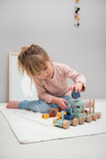 Spring op de trein met onze dierenvrienden! Met alle verschillende blokken in verschillende kleuren, kun je je eigen wagons maken. Gebruik het touwtje aan de voorkant om je trein mee te trekken op de leukste avonturen! De trein en al zijn elementen zijn gemaakt van 100% FSC ® gecertificeerd hout. Alle verven zijn op waterbasis en veilig voor baby's.